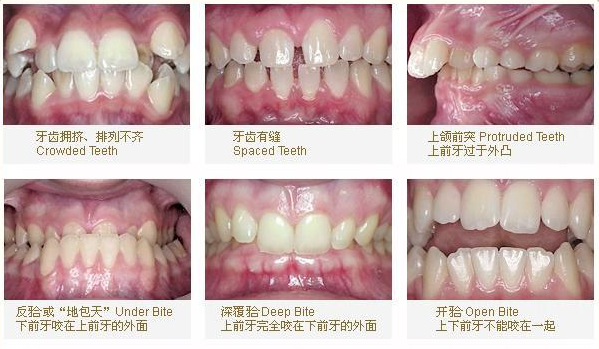 畸形牙要尽早矫正,比如反颌(地包天),严重的深覆合、深覆盖,多生牙等等,因为这些情况会使牙齿畸形越来越严重而变得难于治疗。