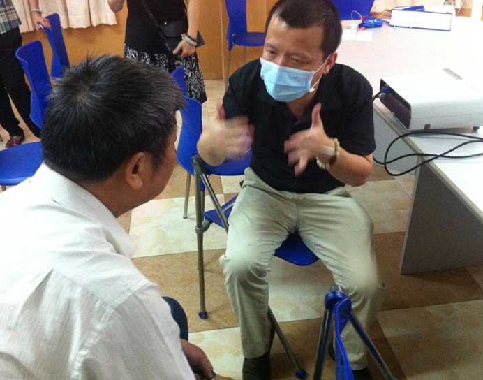 大叔在听专家讲解口腔难题