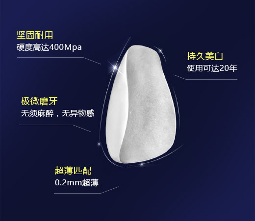 瓷仕白贴面化学稳定性好,透明性好,瓷贴面颜色稳定,瓷贴面可配色,色泽接近天然牙,耐磨性能好,有效抵抗咖啡、茶渍、烟渍等色素的附着。