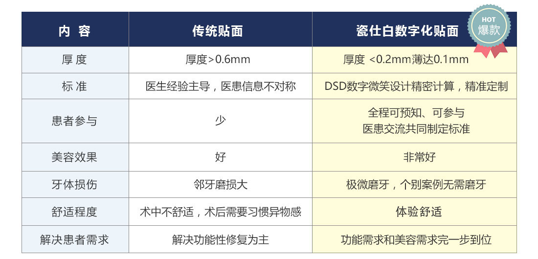 穗华瓷仕白数字化贴面采用全新高科技生物材料,应用独特工艺上色,形态完美、色泽自然逼真,最薄可至0.1mm硬度高达400Mpa,每一片贴面在形状、色泽上与患者的牙列脸型完美匹配,整个过程无创、零痛苦,美观大方,经久耐用无需备牙,维护简易。