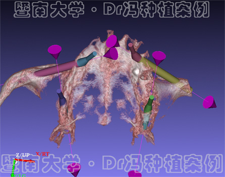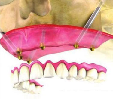 “穿颧种植”是一种通过颧骨固定种植牙的技术,将种植体植入到位于人面中部前,眼眶的外下方呈菱形较硬的骨头——颧骨,是当今难度很大的种植技术,被种植牙界誉为“珠穆朗玛峰”的顶级技术,俗称“无土栽培术”。一般重度颌骨吸收患者需要2颗穿颧种植体就可以获得很好的固位效果,在前牙区可以垂直植入2至3颗普通种植体。对于较度严重的颌骨吸收的患者,还可以使用四颗穿颧种植体。